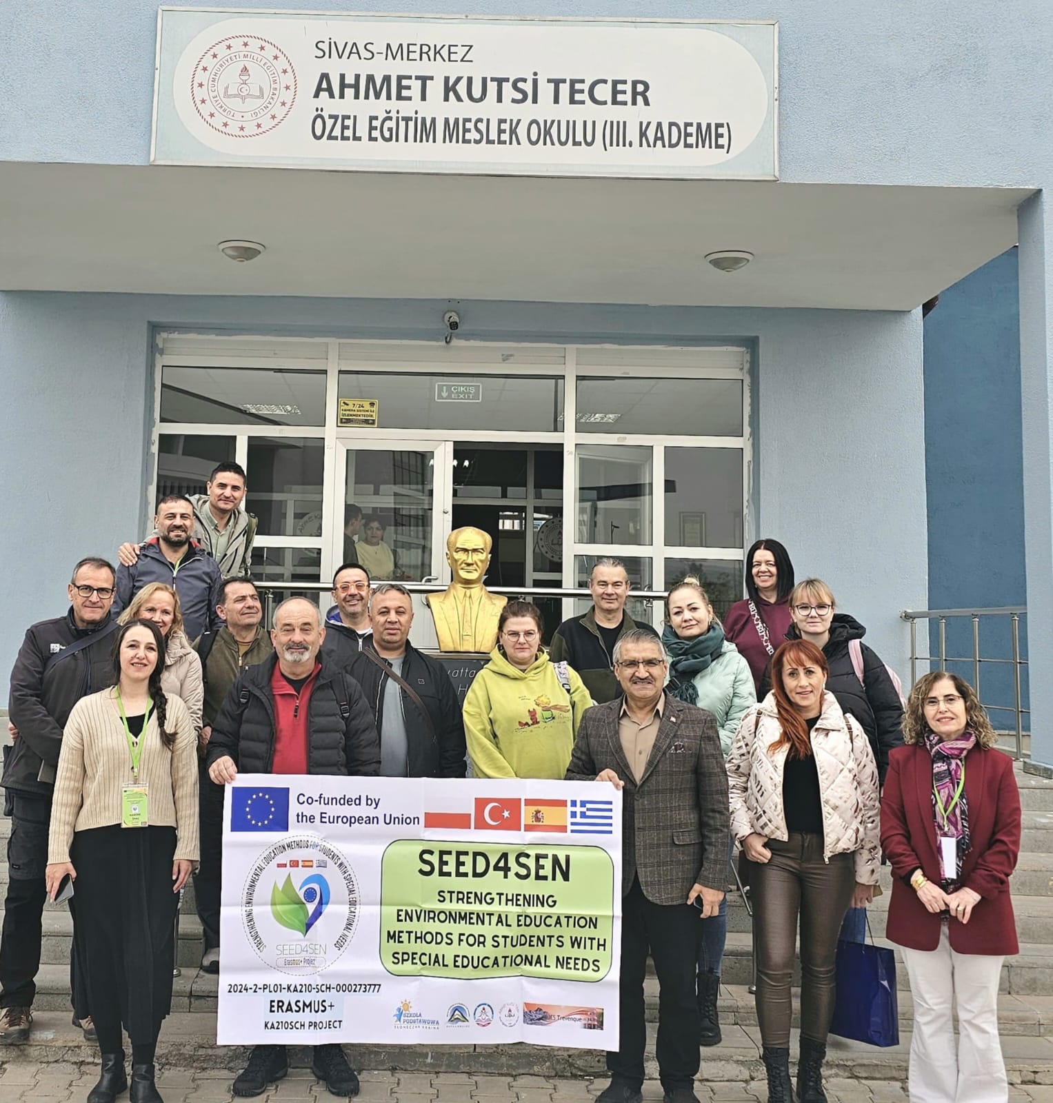 Ahmet Kutsi Tecer Özel Eğitim Okulu ve Hamza Yerlikaya Ortaokulunun ortaklaşa yürüttükleri Özel Eğitimde Çevre Eğitim Metotlarının Güçlendirilmesi” Erasmus+ projesi kapsamında Polonya, Yunanistan ve İspanya’dan bir dizi eğitim faaliyetlerine katılmak için gelen öğretmenler Millî Eğitim Müdürü Fatih Erdoğan’ı ziyaret etti.