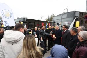 Uzun, “Özel Halk Otobüsü kooperatifimizle birlikte otobüslerimizi büyüteceğimizi söylemiştik. Kooperatifimiz elini taşın altına koydu, biz de Belediye olarak destek vererek şu an itibarıyla 4 tane sarı uzun otobüsü şehrimizin hizmetine kazandırmış olduk. Bu çalışmalarımız ilerleyen dönemde devam edecek. Amacımız ulaşımda güvenli ve konforlu bir hizmet sunmak. Mevcuttaki otobüslerin uzunluğu 8 metre. Bu da ciddi anlamda bir yoğunluğa sebep oluyor. Yeni otobüslerimiz ise 12 metre, koltuk sayısı daha fazla ve daha geniş… Haliyle daha fazla yolcu kapasitesine sahip… Aynı zamanda bu otobüsler yedek parça, yakıt ve bakım maliyetlerinin düşük olmasıyla kooperatifimize büyük katkı ve tasarruf sağlıyor. Esnafımızın yanında yer almaya devam edeceğiz. Özel Halk Otobüsü kooperatifimizle birlikte inşallah şehrimizde bu yeni otobüslerimizi daha fazla yaygınlaştıracağız” dedi.