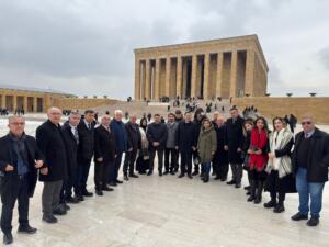 Anadolu Basın Birliği (ABB), 13 Ocak’ta Ankara’da gerçekleştirdiği panel programının ardından Anıtkabir’i ziyaret etti. Ziyarete ABB Genel Başkanı M. Bora Zor’un yanı sıra Genel Merkez Yönetim Kurulu üyeleri, şube başkanları ve Anadolu’nun farklı şehirlerinden gelen gazeteciler katıldı.
